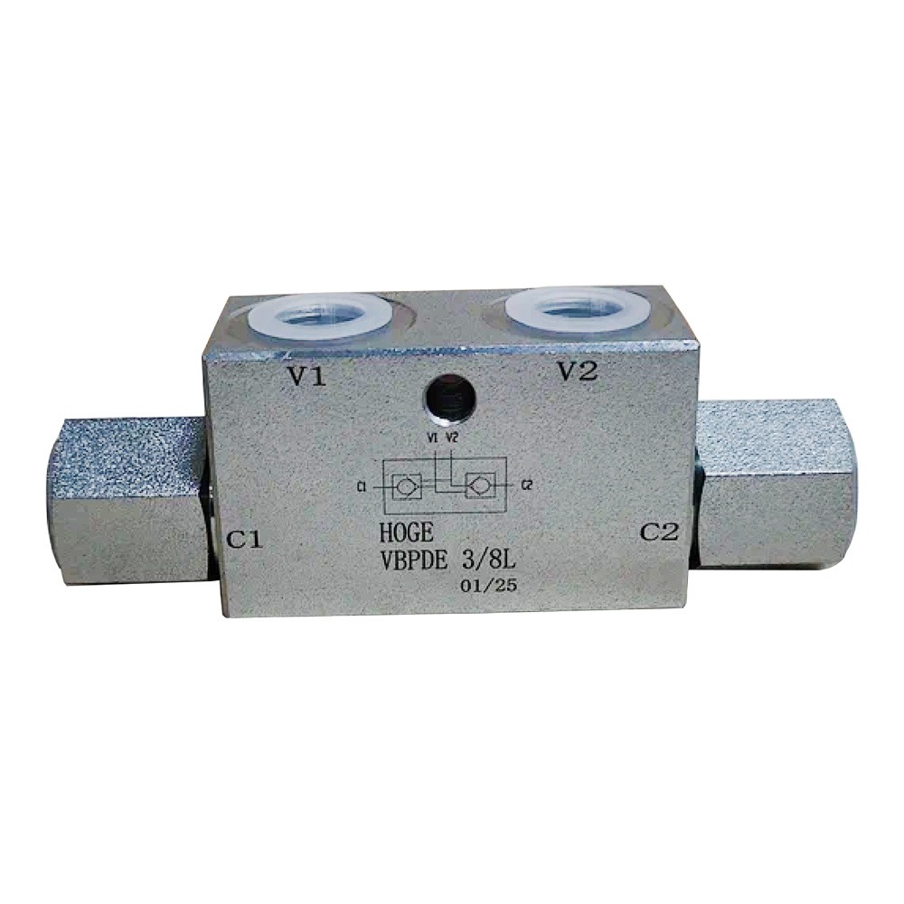 Стандартный двухсторонний гидрозамок с отверстиями для подключения по двум перпендикулярным плоскостям корпуса. При отсутствии управляемого потока на гидроцилиндр – гидрозамок удерживает гидроцидиндр в двух направлениях линейного движения: «подъём» и «опускание». При подаче управляемого сигнала на гидроцилиндр – гидрозамок открывает полости основных каналов и поток свободно попадает в нужную полость цилиндра и тот, начинает линейное движение.