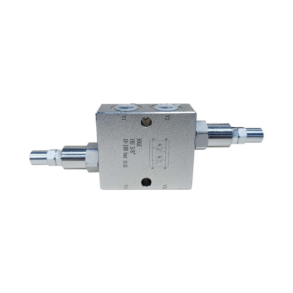 ЗаказатьПредохранительные клапаны перекрёстного действия VAU ограничивают перепады давления между двумя гидравлическими линиями. Состоящий из двух клапанов с перекрестным сбросом, он используется для ограничения давления в обеих ветвях привода или гидромотора до определенного заданного значения. Его лучше всего использовать как в качестве противоударного клапана, так и для регулирования двух ветвей гидравлического контура при различных значениях давления.