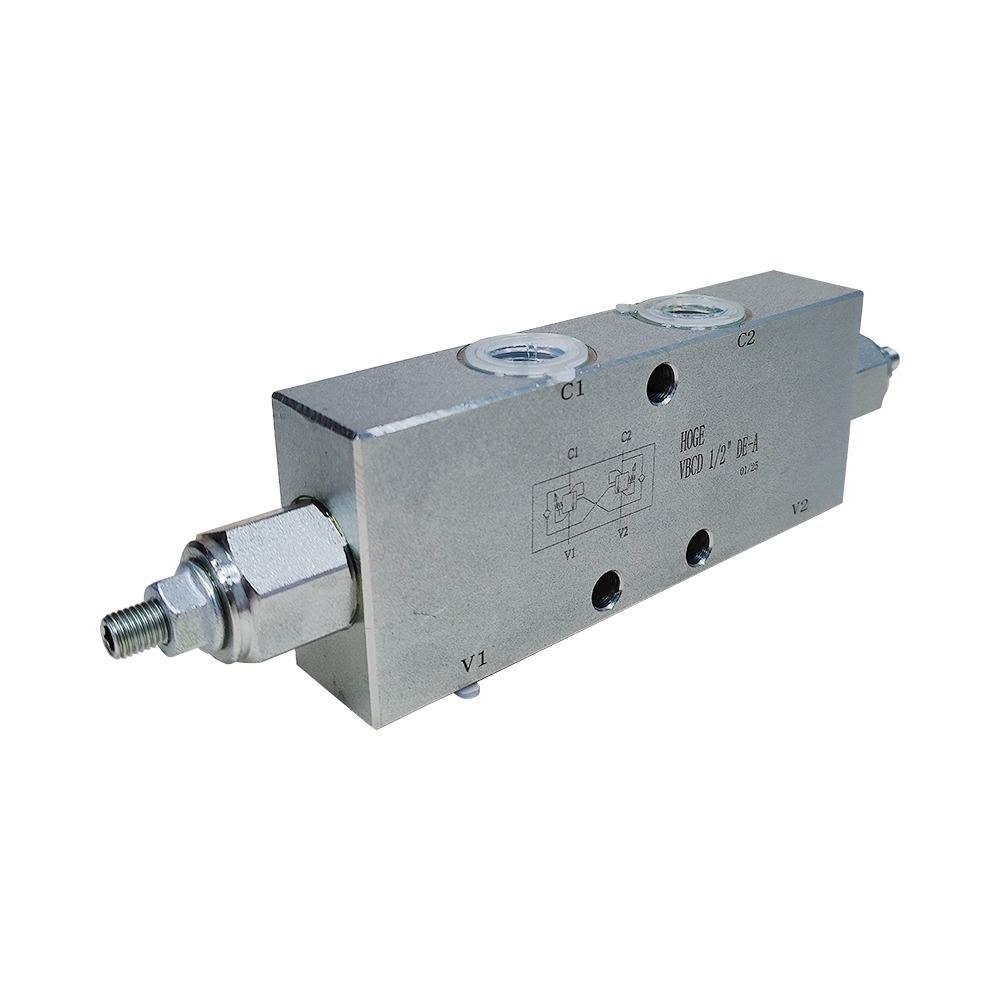 Двухсторонний тормозной клапан. Основное применение эти клапаны находят в системах, где на гидроцилиндрах требуется длительное удержание нагрузки и возможно возникновение нагрузки, совпадающей по направлению с движением исполнительного органа гидродвигателя (попутной нагрузки). Главное функциональная особенность – это обеспечение плавного подъёма и опускания гидроцилиндра, без рывков (при наличии попутной нагрузки). Давление настройки регулируется вращением шестигранного ключа одного из двух клапанов: вращение регулировочного винта против часовой стрелки (раскручивание) – снижение настроечного давления; вращение регулировочного винта по часовой стрелке (закручивание) – повышение значения настроечного давления.